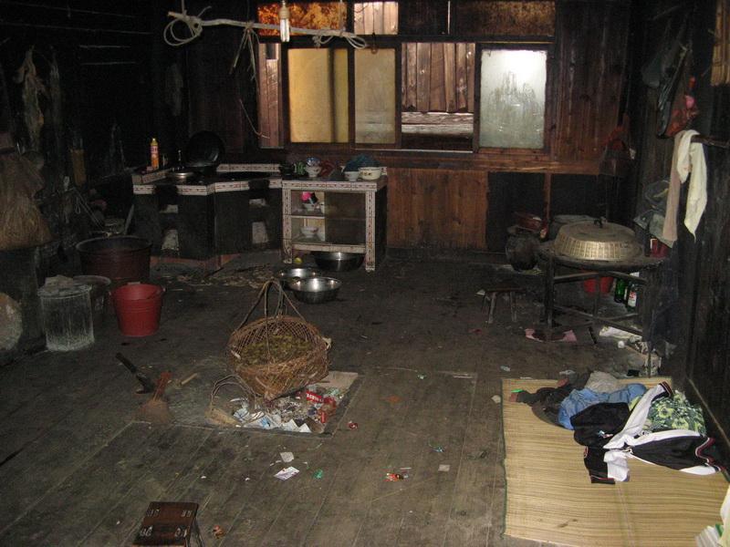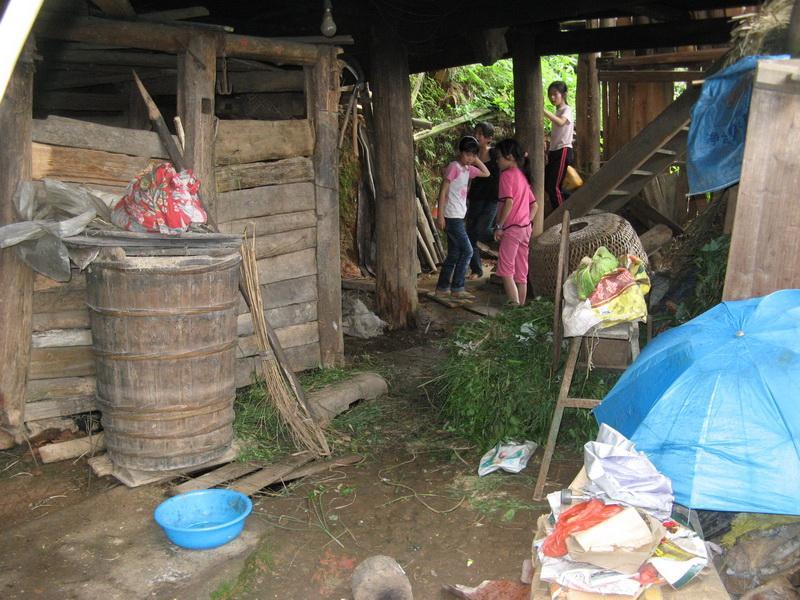 大多数家庭,底楼一般养猪和放杂乱的东西,楼上住人,有人畜合住的感觉,但也只好这样了。但卫生和那股味道不由得让人哀叹。家里有大人的,会收拾的干净些。