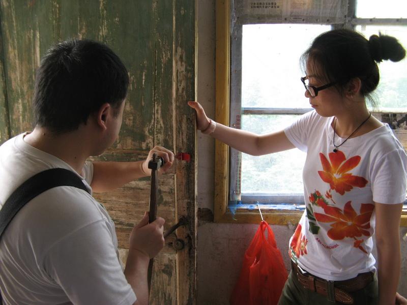 空心菜正帮忙装新琐。哦,支教老师们的窗户只好用报纸糊上,冬天这风呼呼的~