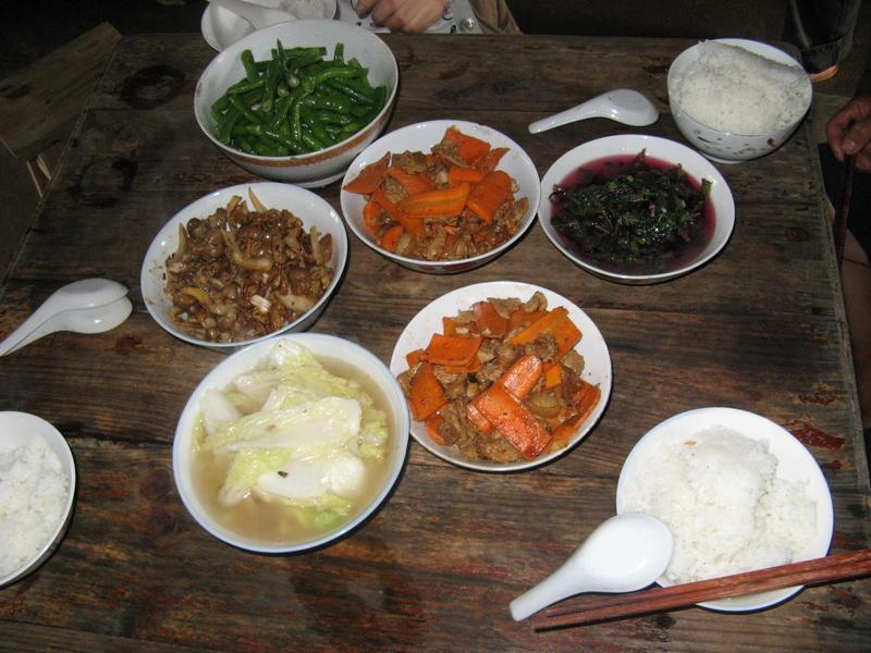 中午校长请我们在学校厨房吃饭。共9个人,5个菜。胡萝卜可是婷婷想了很久的菜,都惦记几个月啦。多少有点歉意,这里的孩子大多是自己带米,午饭就光白米饭的。