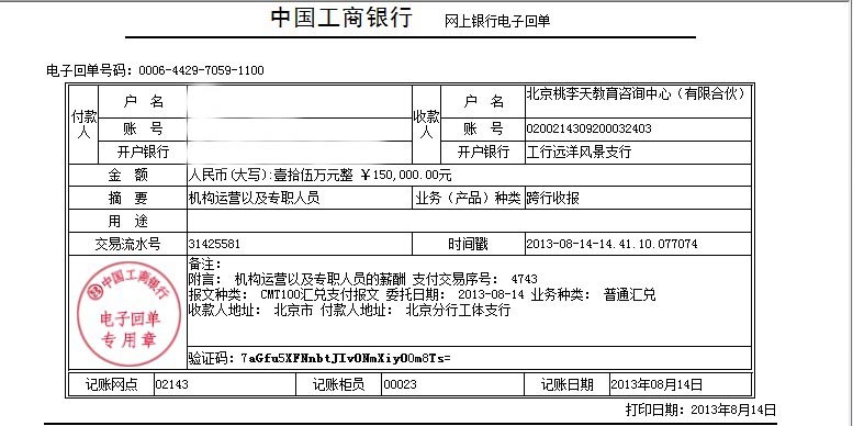 收到机构运营费用一笔150,000.00元整(2013年) [复制链接]