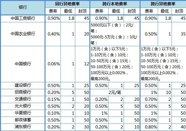 各大银行网银收费标准