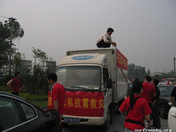去了红十字会但是那边已经有很多人很多车,交通都开始堵塞了,看着帮不上忙只好离开,后来去了少城街道办事处,帮忙整理好物资后运往广元的青川。接着听说西体需要志愿者,立刻赶过去,去了之后工作人员说,灾民还没到来的志愿者就已经很多了,暂时不需要,回来后就开始商讨去灾区的事情。 9@(V !G