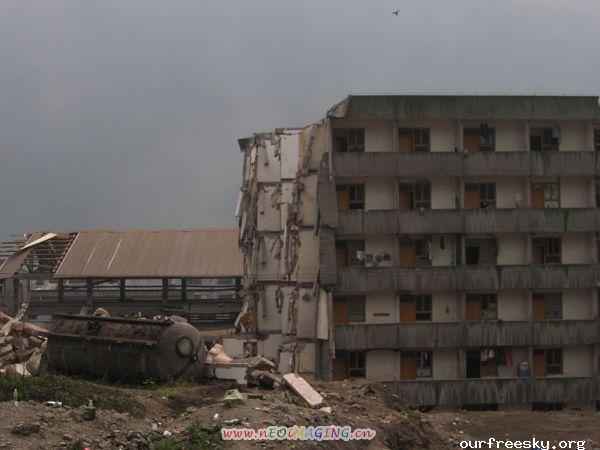 我猜这应该就是宿舍楼,这样看去还没有完全倒塌,但和废墟也没区别了。