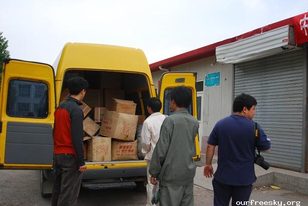 值得一提的,一位MM捐赠了十几箱全新衣物,与药品一同运出。不知道这位MM的名字,在此感谢! B& f~.UH