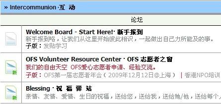 39ng OFS主页:http://www.ourfreesky.org/ Uyeo0B" 如果你刚来这里,可能很多都不太了解,茫目的转肯定不能够快速而又便捷的了解OFS或是寻找到您所需要的东西,因此,您可以简单的先看您想看的。 0ia-D`^me -mo4`F OFS分为四大版块: <Lt"e8Z> x 1.接力支教 2. 爱心助学 3. 爱心书库 4. 心理健康 8<KC-|y. 最简单快速了解OFS的方法,自然是咱们高手如云的论坛了,在主页的右上边有一排目录: 8DbP$Wwi