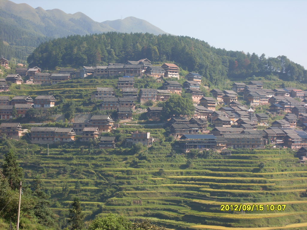 看到一大片寨子了,就像电视里看到的那样:青瓦木楼。