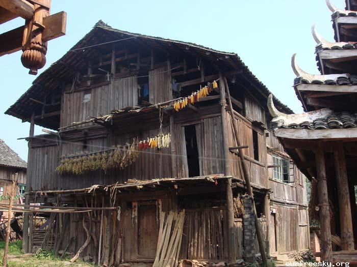 侗族人的房子就是这个样子,全木制到连个钉子都找不到。,一橦接着一橦全是小别墅。一楼养牲口,二楼是厨房和客厅,三楼住人,如果有四楼就储存杂物。听说这个寨子历史上一共被烧过两次,只要有一户着火了就得眼看着一户接一户地烧过去。烧光了大家再齐心合力地造个新的寨子出来,反正山上有的是木头,别的不行,只挑杉木盖房子。如果没有火灾,这样的房子可以住上百年。显然不能把这样的建筑搬进城里,城里人秘密太多而这样的房子显然一点不隔音。