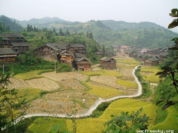 唯一让我有想法的是那里的旅馆,很干净的侗家木头房子,还有淡淡松木的香气,价格更是合理地离谱,住一宿10RMB。无奈抵不住宫老师的一再坚持要回城,于是我很爷们儿的依了他租个“肉包铁”于日暮时分反城,一路上小风嗖(sóu)嗖(sóu)的。吹着小凉风的同时我们开始讨论明天做什么的问题,摩托车司机大哥曰去了皇都也应该去一下万佛山风景区,那里更有意思,遂决定明早启程,万佛山方向挺进。