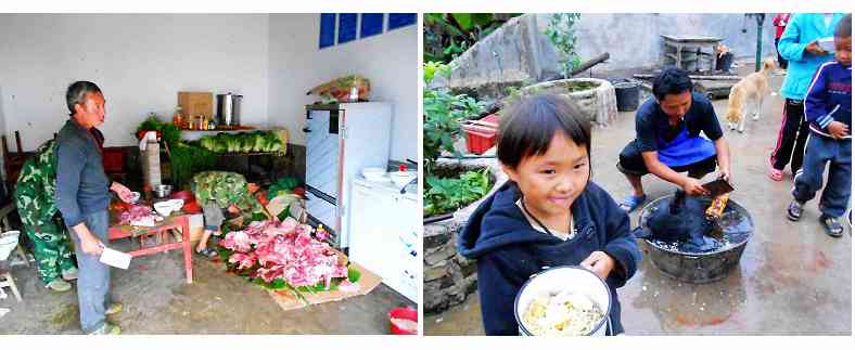 吃过午饭,开始马马小学的周末放假了,因为准备留在马马过这个周末,所以决定跟着9个学生回家去,一个叫核桃寨的村庄,一路上孩子们叽叽喳喳,纷纷告诉我那些花花草草树木的名字,什么断肠草啊,木团果啊,樱桃树啊(发音和樱桃树一样,但是经过我的辨认,和北方的樱桃树是两种不同的树),飞花菜啊,又摘野花吃野果,我也把带着的饼干糖果分给他们吃,路上还见到一条被灭了的蛇,一堆准备用来做棺木的木材。山路弯弯,而且一路下坡,经过一个半小时的徒步,终于来到核桃寨,一个快到山脚下的小山村。在春进家的二楼上,孩子们发现一条蛇,把我和另外两个小女生吓得躲到远远的,后来听到楼上一阵咣咣咣砸东西的声音,然后男孩子们拿着那条被砸死的蛇冲下了楼。他们把蛇扔在岩石上,从蛇肚子里相继挤出了5只小老鼠!由于现场太过血腥惨烈,堪比《狂蟒之灾5》了,我始终没敢举起相机。后来跟着孩子们去看了一座破庙,路遇一百岁老人在门口坐着晒太阳,已经蔫吧了。又去另一个兄妹俩都是马马小学学生的家里坐了一会,孩子们非要我看电视,大概这个对他们来说是最高待遇了吧。孩子们又给我摘了桔子、黄果(当地一种水果,类似橙子)、胶桃(当地一种像桃子的水果),还砍了一根甘蔗给我带回学校吃。回马马的路上,又给我摘了葫芦和两种野菜:飞花菜和茅菜给我装在包里回来吃,这两个五年级的男生领着我走的是他们经常走的近道,一条有三百米的斜坡,坡度约为七十度。他们走得是气定神闲如履平地,我爬得是气喘吁吁狼狈不堪,学生们看不过去连我的背包都拿去背啦,我轻装上阵后才好不容易手脚并用爬到山路大路上,我说我认得回去的路,坚持让孩子们回家去,他们不肯,非要陪着我走回学校,说把我送回学校后他们再自己走近路回家,不用半小时就能回去了。我只好和他们一路说着话很快就回到学校。作为感谢,我送给他们一些糖果和饼干,还有铅笔等学习用品。他们很开心地回去了。