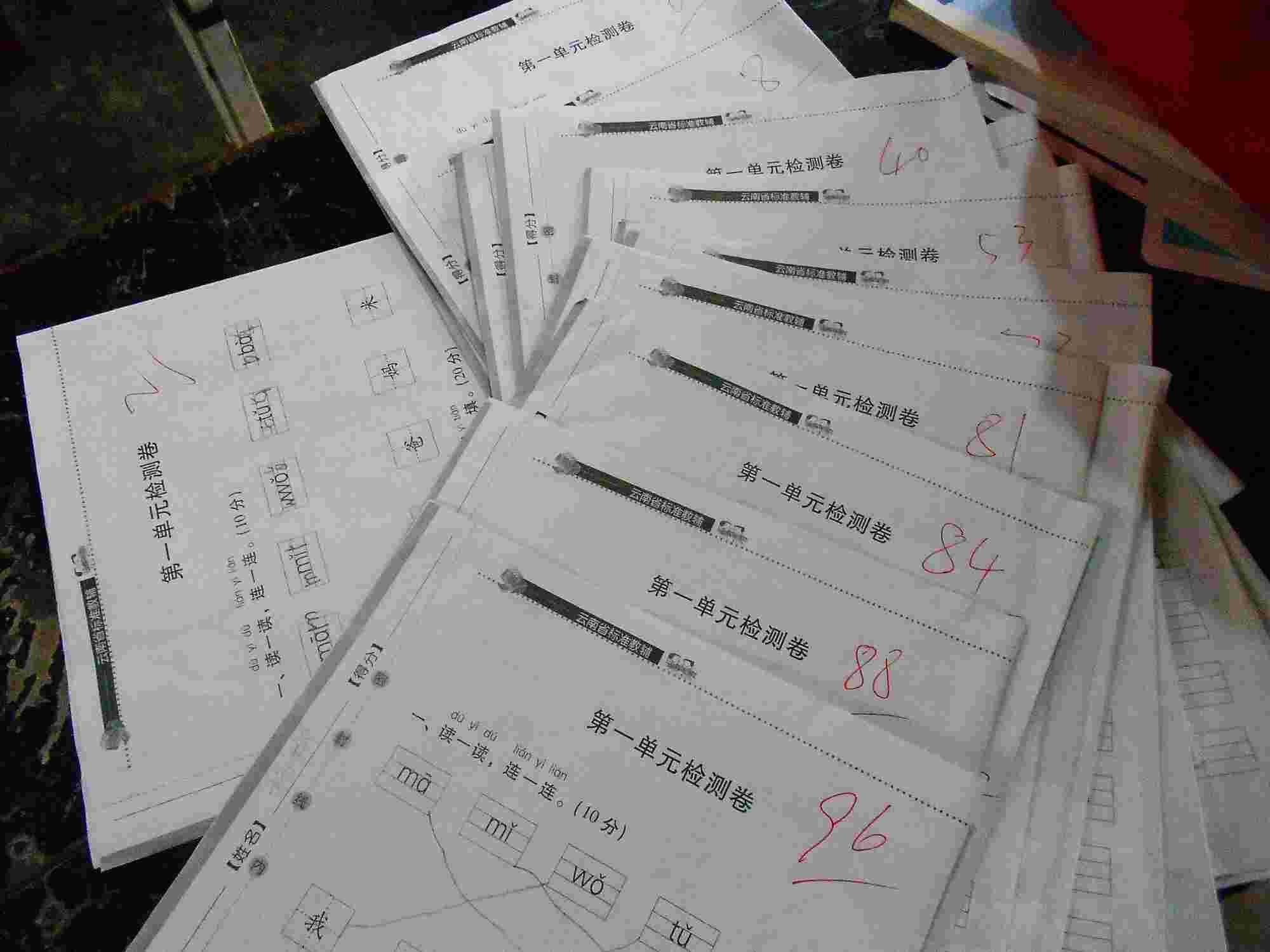 晚自习把全部的卷子收上来了。然后开始讲新课,后鼻韵母:ang eng ing ong,除了课本上的图片他们能认识,拼音卡片上的图片:肮脏的毛巾,风筝,松鼠,他们几乎都不认识了,反复朗读,又开火车加深印象,还是不够理想,除了那几个固定的几个孩子以外,大部分孩子还是在浑水摸鱼,人云亦云,得想个办法了。晚自习下课后,在教室批改卷子,这次考试真是和我估计的一样,参差不齐的水平,成绩从2分到96分不等,看来我这个老师太不称职了。