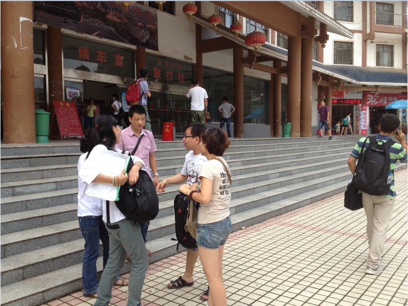 班车历时大约3个小时,我们到了县城客运站。好累哦,腰酸背疼的。下了车,看到了独小梁大姐,看到了新的战友王老师。我们在客运站门前互相诉说着,就好像多年失散的兄弟姐妹。过了一会儿,大众的二刘也到了。我们打了两个车直奔之前志愿者提供的君悦宾馆。到了宾馆,我们先开了一个房间,把所有东西放下,便集体准备赴约曾局长的午宴。曲哥比较注重形象,抽空去理个发。其余人等在街道两边候着。我和小八走进理发店,看了理发师剪了两下,我心想坏了,大哥的头啊,悲催了!我和小八走出理发店,跟大家说,一会儿大哥出来就说,哇塞,大哥好帅哦!结果曲哥出来后,沉不住气的我哦,呵呵,不说结果,你懂的。
