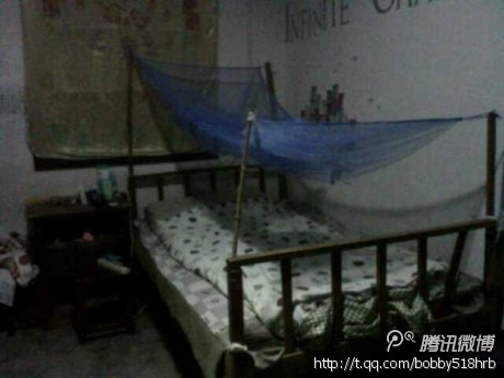 人善被人欺啊,不仅蚊子飞蛾光顾我的小窝,也引来了臭虫。每天晚上臭虫咬的地方就奇痒无比,很多次都被痒醒。曲哥和我遇到了相同的问题,不过他的房间不缺玻璃,没有飞蛾,有的只是臭虫。曲哥把他房间里唯一的蚊帐给我拿来,用四根棍子支在我的床头,这样,晚上我就不必忍受蚊子的叮咬。至于臭虫,一般藏匿于床缝,被褥等地方。百度大叔告诉我,臭虫怕光。不得已,我天天开灯入眠。这样,由于灯光加上蚊香的效果,再加上罪魁祸首的5块缺失的玻璃,接下来的一个月里,我早上需要天天清扫满屋的尸体。也许你会问为什么不自己去找玻璃安上?因为我们对当地不熟悉。也许你会问为什么不再次找校长?校长已经找了几次了,都是口头答应,便没有了结果,你也不好意思再开口了。