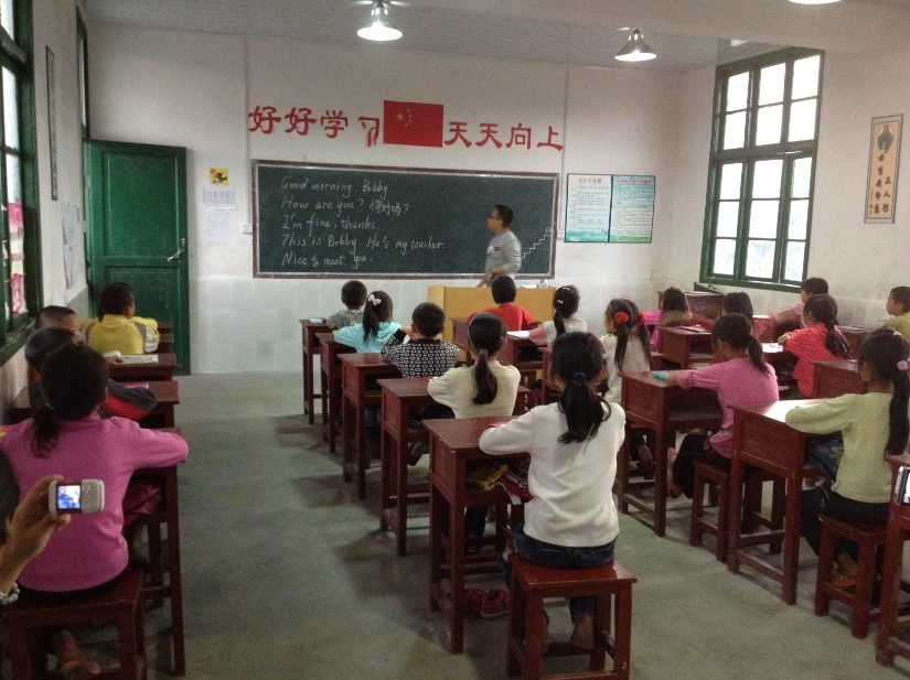 我再也听不到五年级那几个学习好的女孩子告诉我,老师你应该这么讲,老师你应该那么讲的话语。我知道,我得到了学生们的认可。在欢跃的课堂气氛下,我的支教生活正式开始了。本来离上岩村不远的孟冲小学3年级的孩子应该来上岩读3年级。因为那里不是完小,没有英语老师的配备。那么3年级就是60多人,我和曲哥一人教一个班英语。可是孟冲的学生迟迟不来报到,原因是家长都觉得孩子太小了,来上岩上学还得住校,无法照顾自己。最后,3年级29人的英语课由我担任。这样,我一周早读,正课和晚自习加在一起一共是23节课,全部是英语。3年级7节,4年级8节,5年级8节。而曲哥带的是五年级语文,其余全部是副科,也是23节。