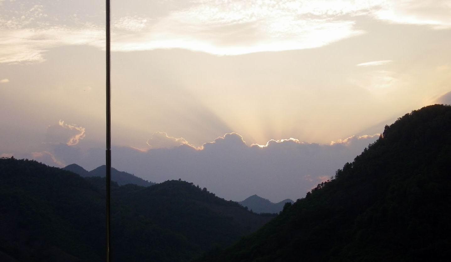“日晕三更雨”,民谚果然不假。傍晚时分,只见空中乌云翻滚,变天了!天刚擦黑,闪电就频频划破夜空,雷声轰鸣。我一看势头不好,赶紧关紧门窗、洗漱上床,关闭了所有电器。以前下雨时,屋里总是进水,这次作为预防,特地在门缝处放了一只拖把挡水。此时只听得屋外狂风大作,阵阵闪电将窗户照得雪亮,炸雷一个接着一个,瞬时间,大雨有如天河决口,只听一片“哗哗”的水声。心想果然有发泥石流的风险,幸亏此地植被好,尚无忧虑。王老师居然就在这电闪、雷鸣、雨泼的“大合奏”中安然入睡,真佩服自己啊!