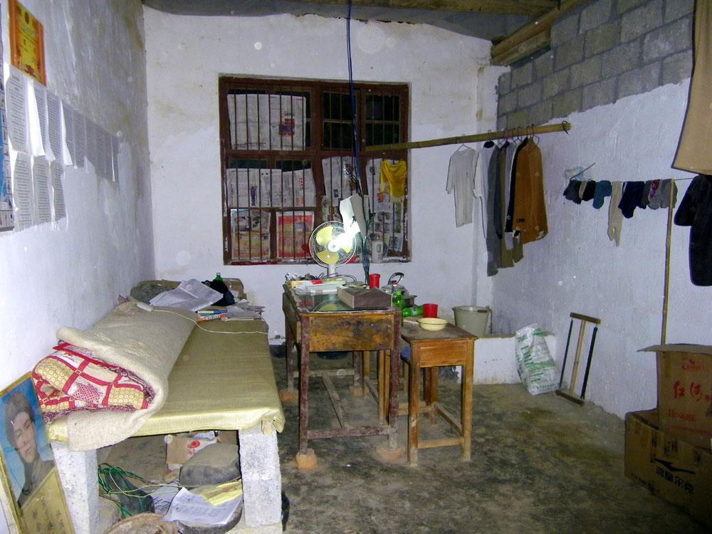 早上一睁眼,天哪!半间屋子浸泡在水里!拖把湿淋淋的没起什么作用。赶紧起身扫水擦地,倒腾东西。最不幸的是衣柜再次经受发水的考验,由于浸泡了半宿,柜内已经有了潮气。只好将衣物取出用吹风机“除潮”。收拾停当,已近中午,方觉饥肠辘辘。饭后又去找了两块木板垫在衣柜下面,彻底解决浸水问题。(否则夏季暴雨频发,不仅我现在面临“水漫金山”的威胁;经过一个暑假,下期支教老师来时,恐怕已经满屋长毛了)