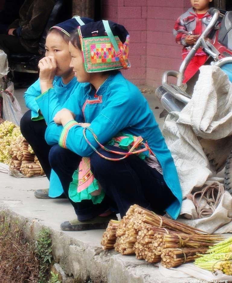 那天赶集的时候见到几个服饰全然不同当地风格的鲜艳女子,得知是来自贵州的侗家女人,她们从三省坡上采来“实心笋”,一小捆一小捆的扎好,每人只能背三五十捆。早上四点从家里出来,走三十里山路,早上十点光景来到集市,贩卖她们的山货,每捆笋子售价一元五角。