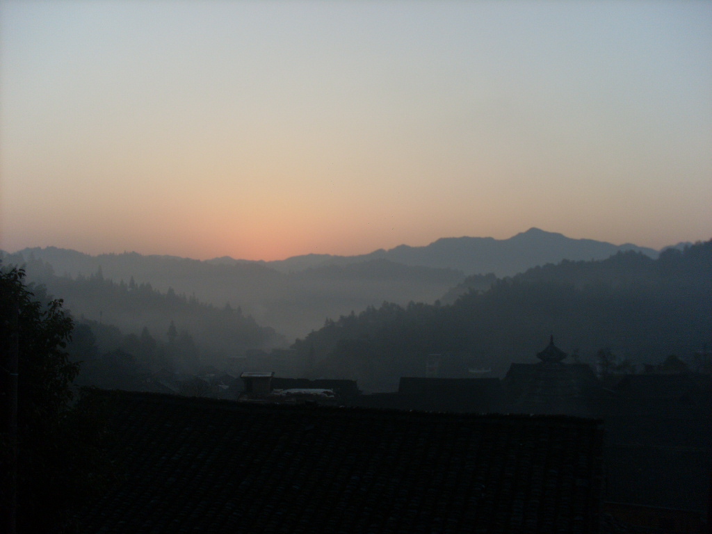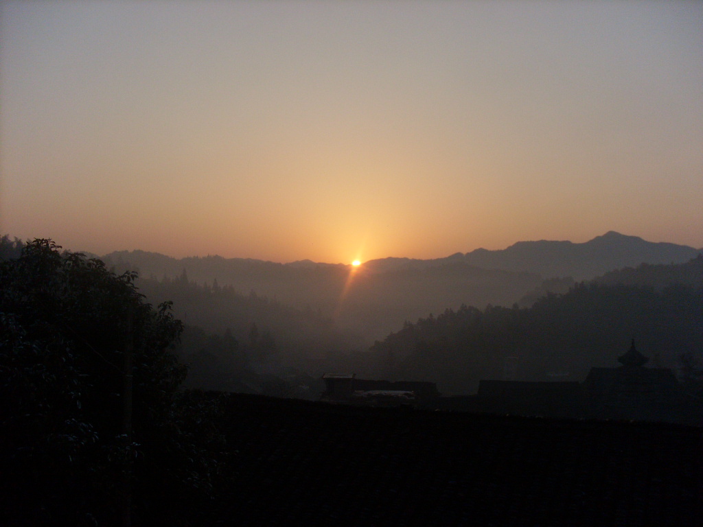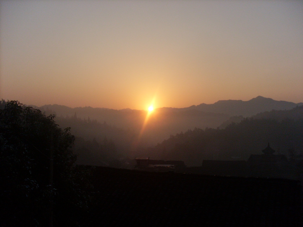 早起,拍了几张村景和日出。照片怎么也不能达到实景那么动人。