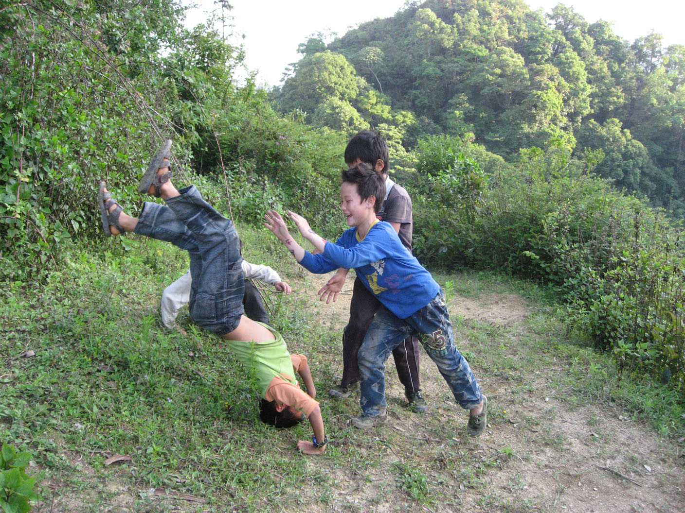 快到4点钟的时候,赶集的车回到寨子了,车上装有学校这周学生的菜,通常都是四、五年级的学生负责把菜抬到厨房,今天这时候也奇怪,到学校的都是女生,没见什么男生,女生抬不动跑来叫我,我试了试也拎不动啊,盯着一堆菜发呆,哈哈,想到了正在学校盖教学楼的施工队拉水泥的手推车,虽然不是很好推却是比抬要轻松得多,加上他们觉得推车很有意思,所以我们是兴高采烈的跑了一趟又一趟把全部菜拉到厨房。