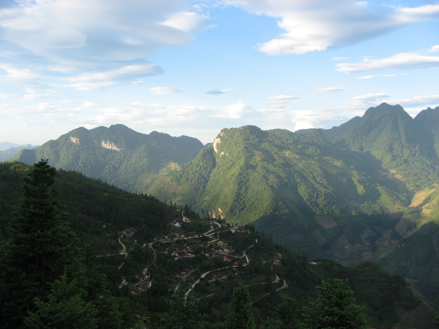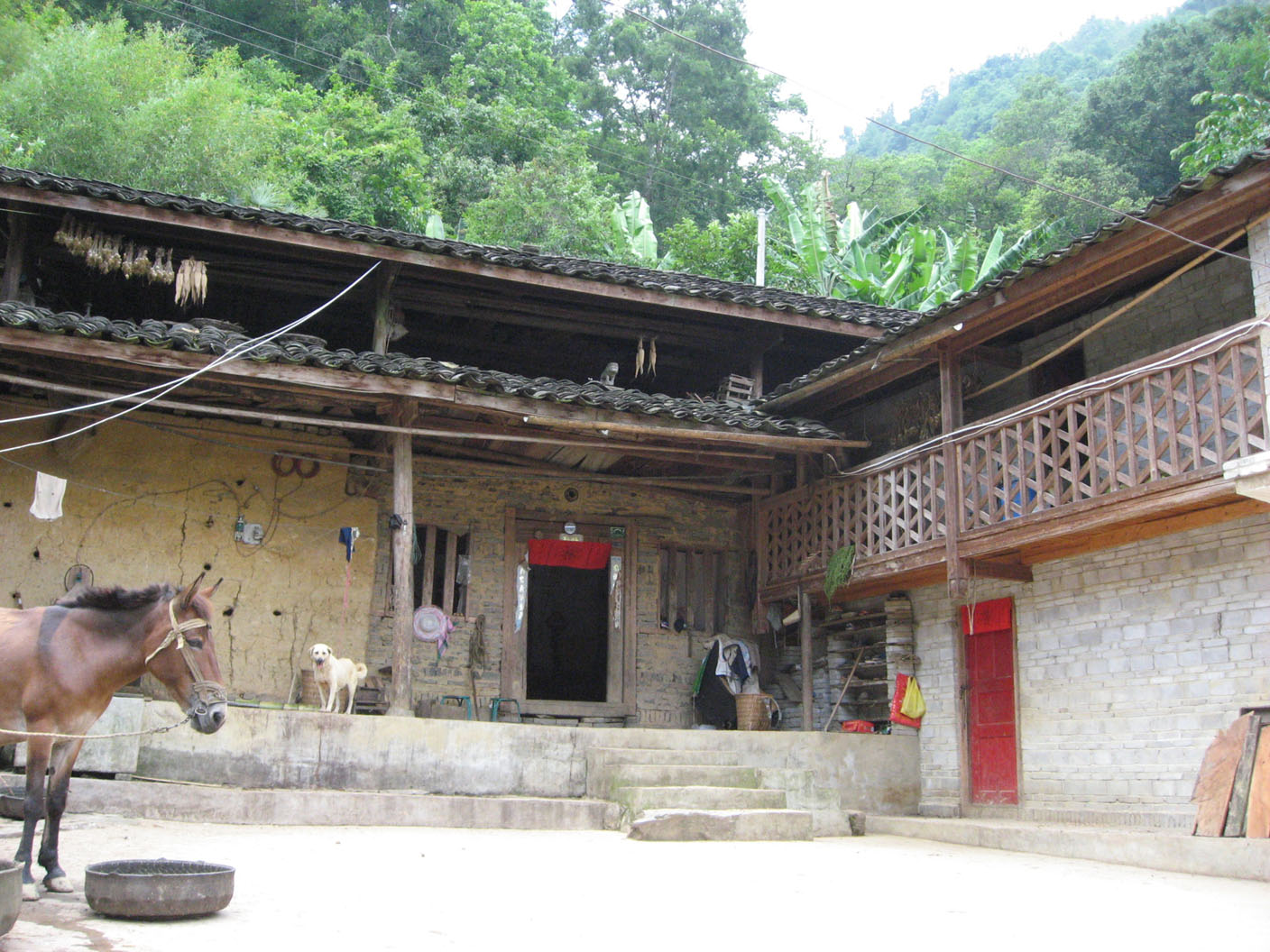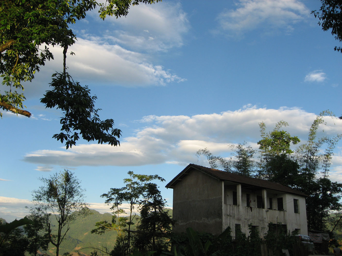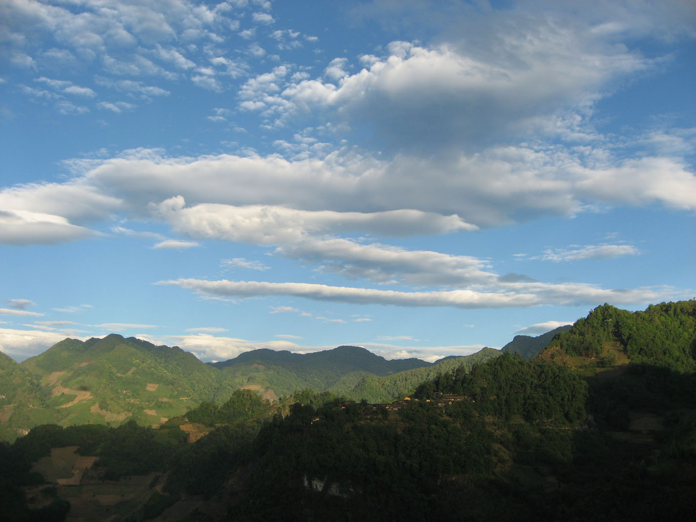 我们走小路半个小时就到了毛木树,五年级有个女生家在这,我们昨天已经约好今早来找她。毛木树应该有40多户,寨子里修了水泥路,比较好。我们都不知道她家是哪户,两个男生跑在前头去打听了。找到她人的时候,她正在靠路边一户人家的门口等我们,我以为这就是她家还夸她家的位置好、视野好,她却说这不是,她说不好意思带我们去她家,因为她家不好,屋子不好。我笑笑也没坚持要去,就在寨子里转了转。接着加上她我们一行8个人向山大沟出发。