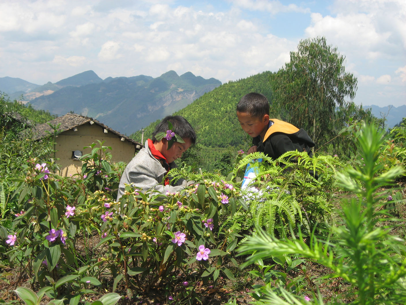 这次放假没有跟刘校的车到乡里去,计划到五年级学生家的寨子转转。今天中午放学先跟几个学生一起到核桃寨。