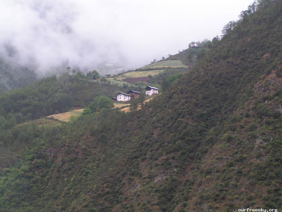 车行山脚,下车徒步,沿溪而上,坡度越来越陡,大约一小时,到达核桃坪。只见三三两两的民居散落在山间,房前屋后的山地被开垦出来,种上了小麦和果树,只是田地在山上,而溪流在山涧,以致引水不易,村民只能靠天吃饭。据说现在村民都在溪水的发源地——百草坪上种植中药材,收入也颇为可观。只是该地的许多陋俗还未破除,村民都是傈僳族,而且喜欢近亲联姻。傈僳族有很多传统的文化,傩戏、傈僳传说,可惜没有接触到。 *RPd U.