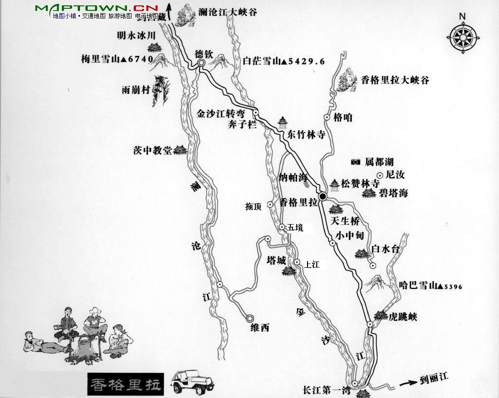 沿山冈而行,翻一小山,地势豁然开朗,建筑耳目一新。中甸亦四面环山,于高原之中拔地而起,市井殷繁,为滇西北第一重镇。松赞林寺修于山脚,华丽庄严,阳光之下,栩栩生辉。马路开阔干净,喇嘛成群结队,或与商贩讨价还价,或游走大街小巷,或来去匆匆,或于酒肆高谈阔论,为中甸一大景色。 X-lB1uq^