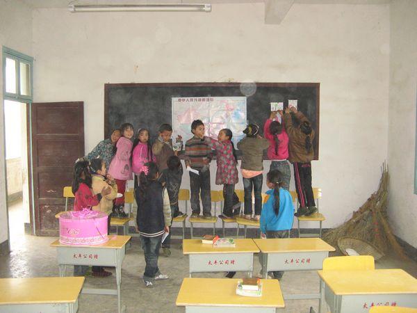 先送孩子们回去,我也就顺便第一次去了传说中的翻身小学!哈哈哈哈。教室的条件比扭仁真的差了一些,都是老的课桌椅、旧式黑板、每个教室还都没锁门,因为没有锁……