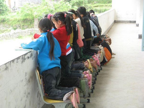 本来还想趁着到中心校的机会调查一下助学学生的情况,谁知刚到那里,就发现人家都背着书包放学了,只有听课的班级留下来了……