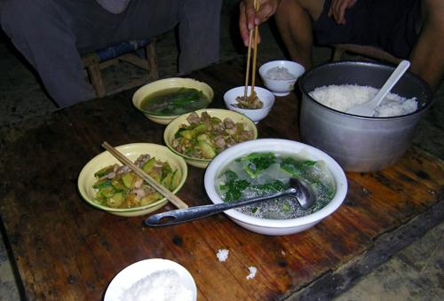 注意到了一个细节:民权老师做饭用的是2000W电磁炉!询问负荷是否过大?答曰:经过了国家农村电网改造,现在用电没有问题了。只要不遇雷雨天,就不会断电,而且电价每度6角钱,学校也能承担得起,所以住校的教师使用电器很放开。看来,国家的扶农惠农政策的确给偏远地区的生活质量提高带来了实实在在的好处。想起来之前,女儿听我说要买些小家电到支教点,就“警告”我:你别给人家贫困学校增加电费负担!也许是多虑了。