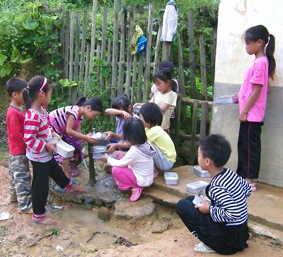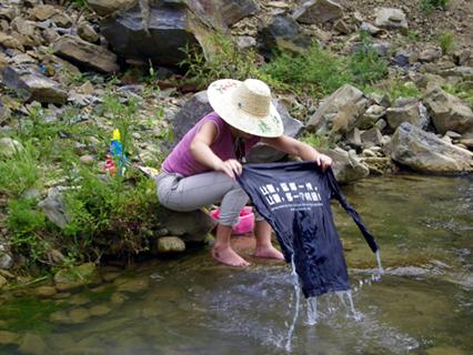 到河边洗了些床单、衣物,对于我们不常走山路的城里人来说,偶尔为之尤如郊游倒也有趣,但是每天如此感觉就很辛苦了。还是希望莫校长早日将“自来水”(实际是从山上溪流引根塑料管到房前未经处理直接使用)接通,以解缺水之苦。我们现在非常有节能降耗、物尽其用的意识:洗脸