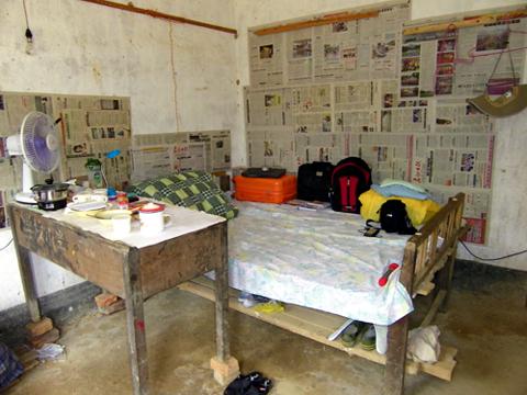 到了民权小学,莫校长已经在支教老师宿舍等我们了,仍然象上期老师一样住在村委会的房子,不知学校把村委会挤到哪里去了。莫校长特意为我们换了新锁,新做了电源接线板。宿舍是里外间,我和樱樱分住。设施条件确实很简陋,当然我们也没奢望怎么样,不过樱樱说,问过前期支教老师缺少的东西,本想多准备一些生活必需品,但某老师说:什么都有,不用带。结果完全不是那么回事。看来男士和女士生存需求的差别很大呀。不过经过我们的完善,下期志愿者感觉一定会好得多。