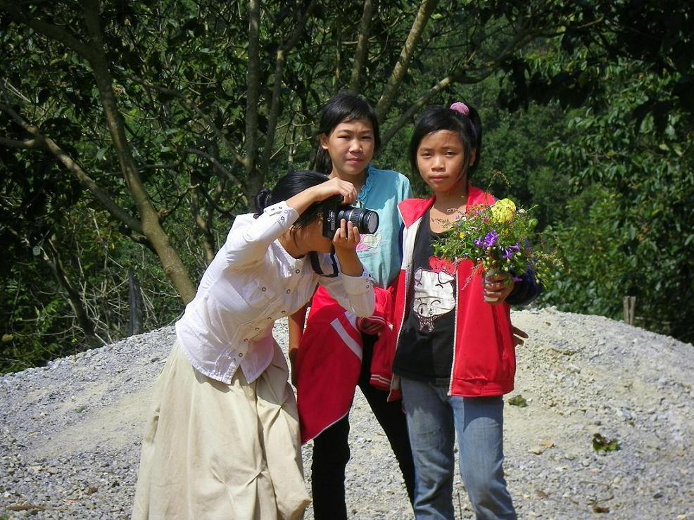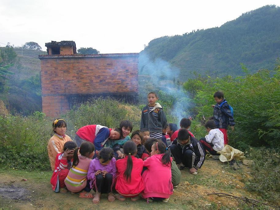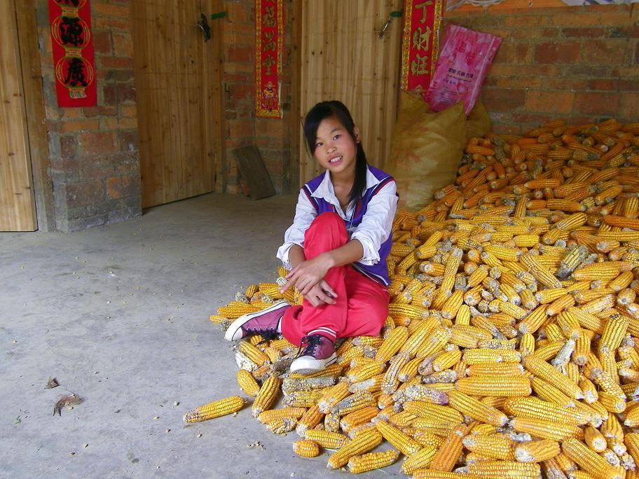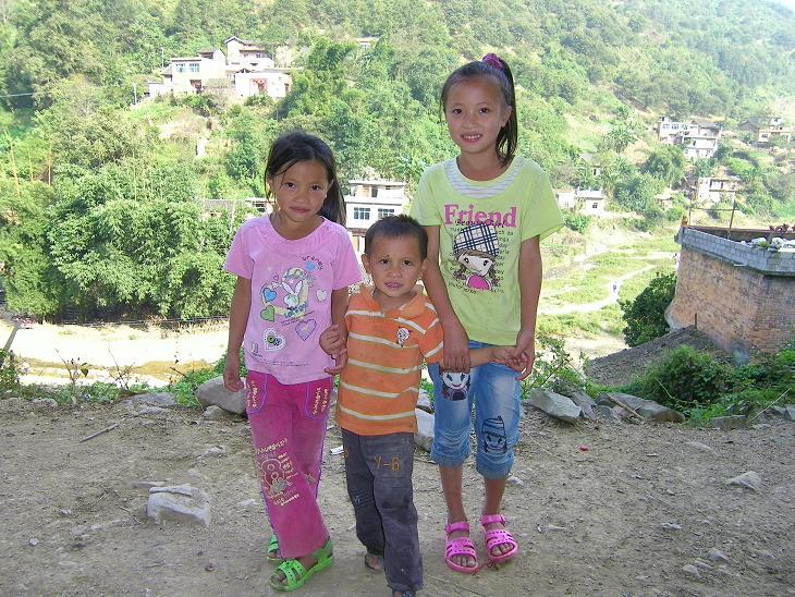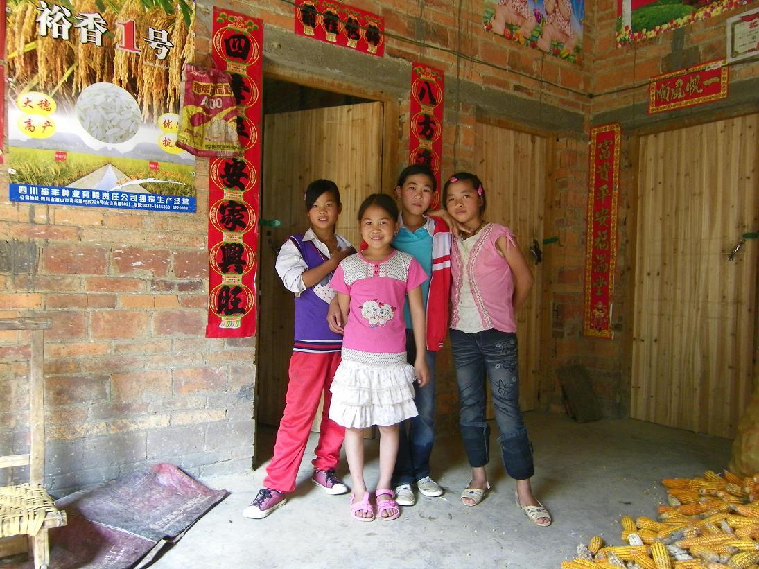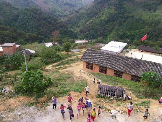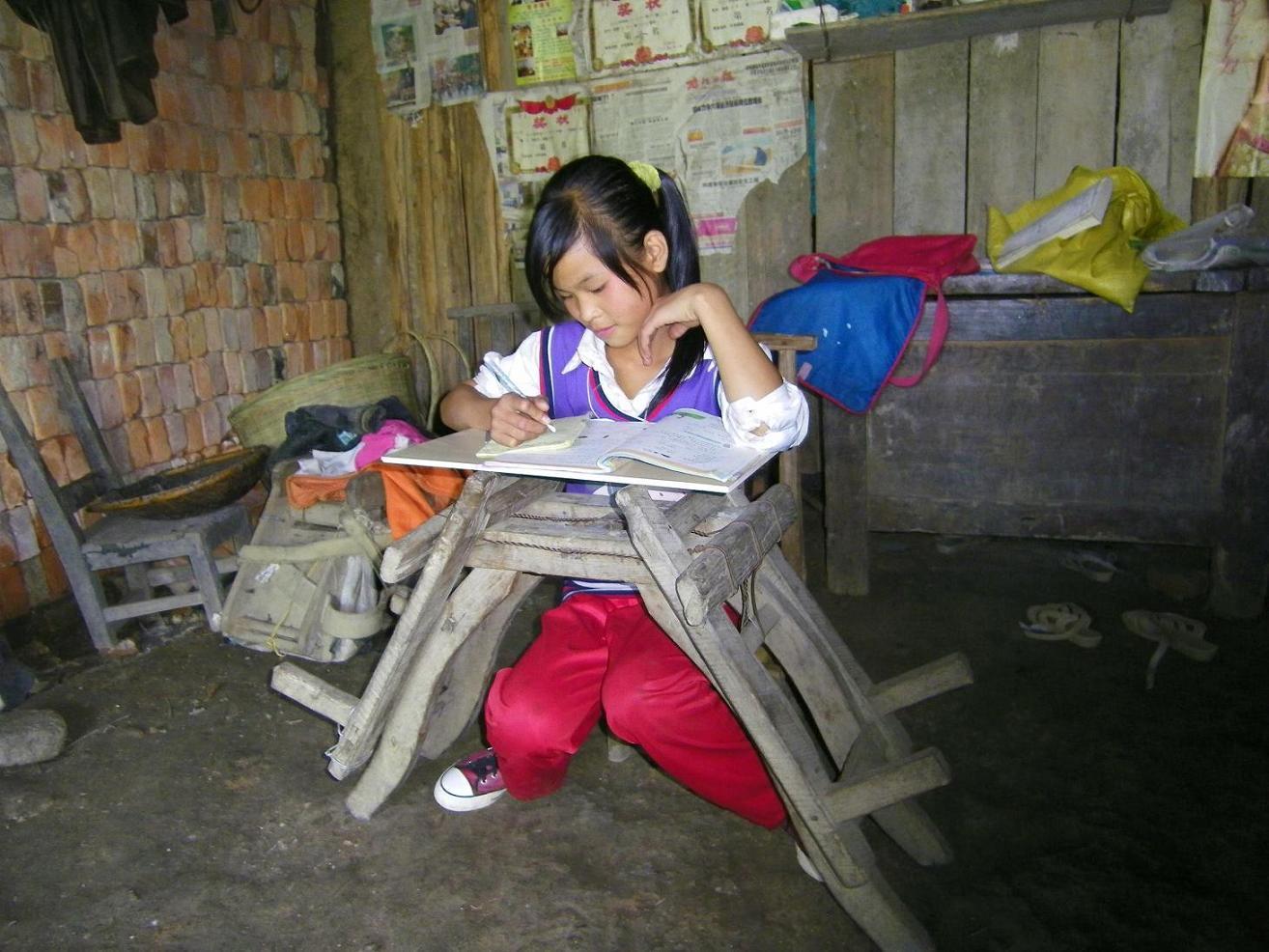 因无电,还有几位老师外出听课,今天只上半天课。午餐后罗主任送我去逻西,行至怀老(民权村的一个寨子,拒学校约10分钟车程,走路约半个小时),罗主任的车爆胎了,无奈只好将我放下,等莫校长来接,他自己则借了一支气筒,边走边打气骑到逻西修车。怀老正好有几个学生在路边玩,就邀请我去她们家,我乐得借机家访一下,就欣然答应。先后去了黄元速、黄小妹、黄凤姻、黄元妹的家,还有四年级的黄元艳、黄元盼的家。这些孩子家有的是二层楼房、有的是平房,住平房的孩子就有些自卑,说:老师,我家很穷,我很害羞。我安慰道:不要紧,老师也住过平房。只要家庭和睦,住什么样的房子都会快乐幸福。结果黄元妹就告诉我:我爸妈盖不起楼房,可是他们总给我买新衣服,让我穿得比别人漂亮。我说,说明你爸妈很爱你,他们尽自己的能力让你开心满意,你不要觉得房子不如别人就低人一等,更不能嫌父母的能力差。她说:老师,我感到很幸福!这让我很欣慰。因为这个孩子自尊心很强,个性也强。她曾声称:我只让我爸妈管我,不让别人管我!我问:老师也不能管你吗?她不语。让大家写一句自己的幸福体验,她偏问:老师,我能不能写我不幸福?对其他同学的突出表现她也常表示出不服气。现在她能这样说,表明她与别人攀比的心理在发生变化,开始懂得享受生活中的快乐和被爱。她家真的可用“家徒四壁”来形容:几乎没有什么可以称之为家俱的物件,也没有像其他人家的厅堂那样堆满玉米或板栗。我问她在哪里写作业?她搬过来一架马鞍,上面放了一块平整光滑的板子——这就是她的“写字台”。她就是在这种条件下,2009年为自己赢得了至少10张学习、体育方面的奖状!我给她照了一张写作业情景的照片,她追问着:老师,你能把这张照片给我洗一张吗?我说:一定会的!而且我会把这张照片放到博客、论坛上,让在城市生活孩子们也看看埋藏在大山深处的“珍珠”(这孩子真是很有明星气质,浑身充满“吴琼花”式的野气和美丽)。还给其他的孩子也拍了照片,这里的孩子们非常富有爱心,拍照时一定要拉上弟妹或在场的长辈,而且都恳求一定要把她们与长辈的合影洗给她们。我会满足她们的要求的!