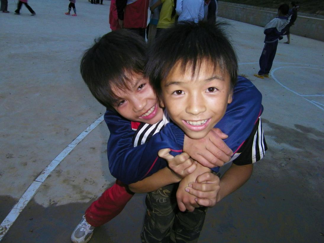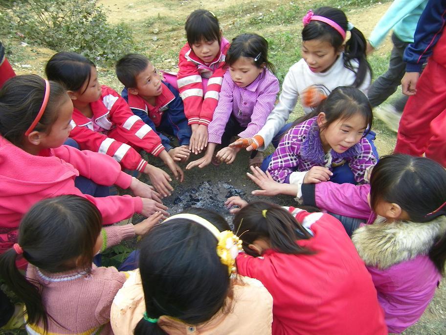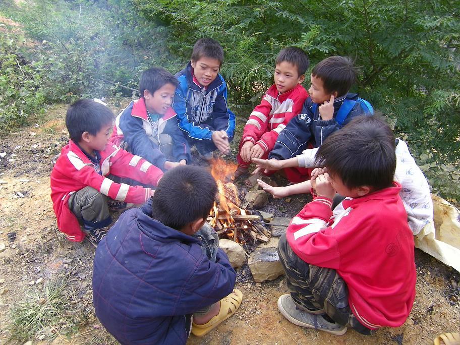 开始阴雨降温,学生们冻得缩手缩脚,住校的学生放学后就在山坡上找一个稍稍平缓点的地方点堆火取暖。于是将亚平寄来的跳绳发给各年级,让他们活动暖身。学生跳绳有很多花样,玩得很开心。学校最早不太敢让发跳绳,因为其他小学发生过学生跳绳造成的意外伤害,后来见这次给的是单人跳绳,我又坚持发给学生,就同意了。对校方的态度,我是可以理解的:那么多学生住校,又地处偏僻,万一发生意外,学校有推不掉的责任,无法向家长交待。