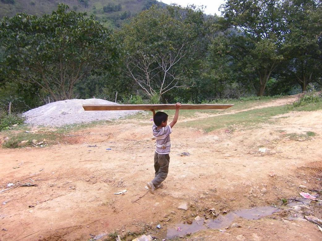 学校为住宿的学生更换了铁床,扩大了住宿学生的规模。学生们高兴地忙着:安新床架;拆木床的床板装到铁床上,调整宿舍的学生还要将床板搬到新宿舍。很小个的孩子就能一个人扛一块板子(这里的床板大多是硬木的,很重),看得我直担心砸脚,可他们还能一溜小跑,太雷人了。这儿孩子最不怕的就是干活,捡板栗、摘玉米、喂猪做饭,样样难不倒他们。自理能力、生存能力比城市的孩子不知强出多少。看着他们,有时我不禁会想:要是让城里的孩子来这里生活一阵,见多识广的城里娃恐怕要自卑了,而山里娃可能会增添几分自信。