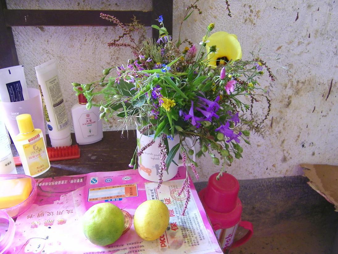 午餐后开始搬家,发现几个家住怀老的学生也在场,奇怪她们怎么没回家吃饭?她们说不饿。我忽然醒悟:她们是为了帮我搬家,特意留下来的!来到宿舍,几个男孩子早在门口等候了。这些孩子太懂事了,让我既感动又过意不去(为那些饿着肚子的孩子),于是找出一些糖果分给他们。山区的孩子爬山是硬功夫,看他们搬着桌子、抬着床架,走着我空手都吃力的陡坡如履平地,不能不佩服!林林总总大小二十多件行李,叫这些孩子没用半小时就“洗劫”一空。到了新居,床铺、书桌很快就绪,几个女孩子还帮我安装了简易衣柜(可能力气不够,没能全部到位),剩下的箱包我自己抽空再慢慢整理。当然,女孩子们希望帮我收拾,我没有满足她们的好奇心,毕竟要保留“隐私权”嘛。