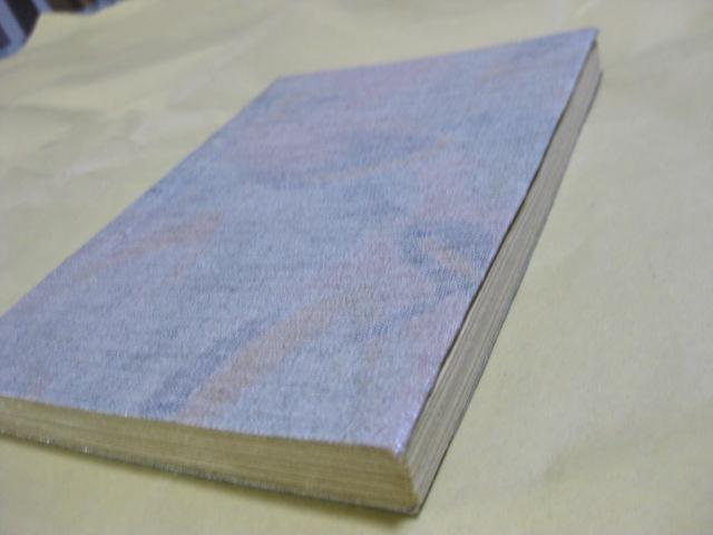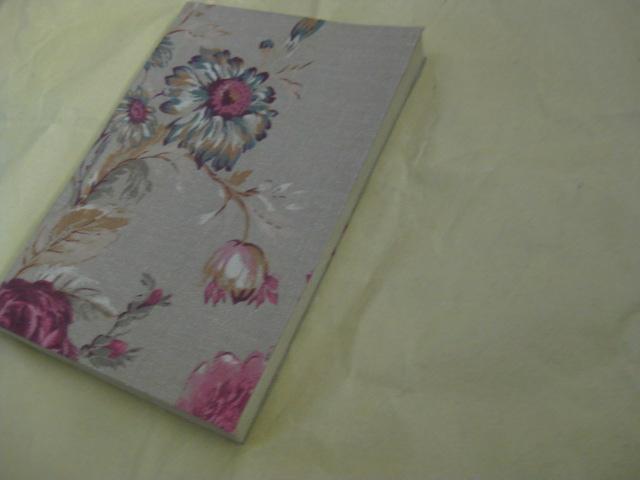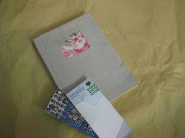 傍晚,终于歇口气了,我小心地拆开快递袋子,还有一个绿色服装袋,嘿嘿,袋中袋,掌柜的有心啊……继续拆,绿色袋子里是系成礼物状的牛皮纸包……嘿嘿,继续拆,哇哦,比照片精美很多的布面……轻轻翻开,牛皮纸的内页很怀旧,当时就想写几个字证明本子是我的,哈哈……没敢写,亵渎了本子……翻到背面,哇哦,新惊喜,一张OFS明信片…… ka [NYW{.