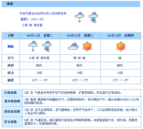 中央气象台2006年04月11日08时发布