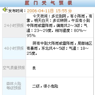 福建厦门天气情况:今天白天,多云,最高气温28℃,风向: ≤3级;今天夜间,,最高气温18℃,风向: ≤3级