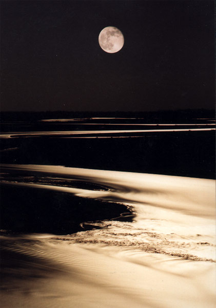 面对如此澄净、清朗、高华而带着神秘的怅惘和淡淡忧伤的诗境,我们最好是身临其境,在江畔月下静静地凝望,或是泛舟江湖之上,听远处洞箫传来《春江花月夜》的乐思。最美好的诗思就象最美好的音乐一样,是只可以聆听、吟唱而不可以言说的。