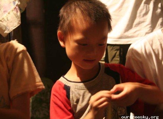 其实不然,中间走访到MSG家,几年前,当MSG还在襁褓中的时候,小孩的父母同去浙江打工,妈妈跟着一个车间小主管私奔,娘家人竟然诬蔑爸爸把妈妈卖了,爸爸刊登寻人启事到处寻找,至今未果。MSG就在奶奶的拉拔下长大,没娘的心酸,尤其是以这样的方式抛弃他,让他在接受我们的文具的时候流泪,与奶奶相依而哭。所有的女生都陪着哭,只剩下摄影的Boss Ma强忍着眼泪无辜地望着我们。