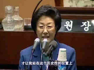 韩国女总理韩明淑:正是由于大家的支持和厚爱,才让我站在这个历史性的位置上,成为韩国第一位女总理。所以,我首先要感谢我们大家。