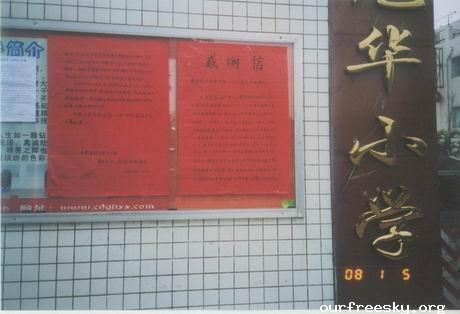 事已至此,1225我独自去了学校,和德育处负责这项活动的老师沟通,确定学校方面的要求,她们本来要求我们送锦旗的,后来看了我们的感谢信觉得不错,要求用大幅的红纸黑字毛笔写出来,以便张贴。这个我负责。同时联系成都的志愿者,FRANK老师,桔子姐姐,高巍姐姐,isabel