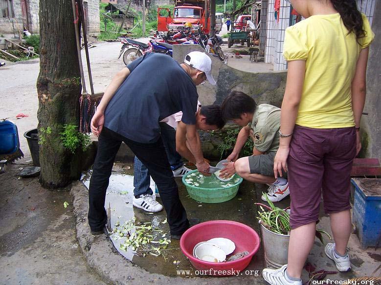同学和老师在这洗手洗脸还有洗饭盆,当然不只这两个,边上还有三个