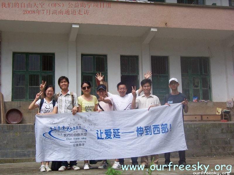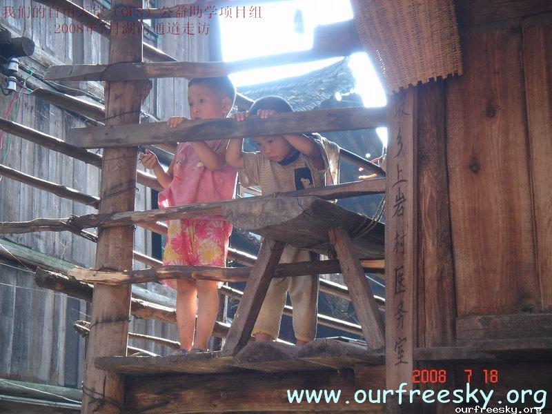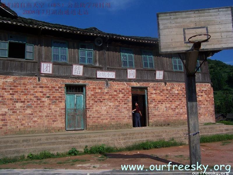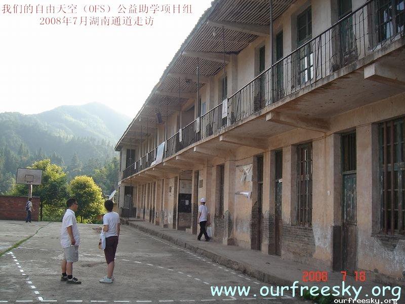 2008年7月15日我们一行四人踏上了前往湖南省怀化市通道县独坡乡走访的路程,此次活动一共有六个志愿者,另外的两名志愿者本身就在湖南工作,我们约定好在怀化汇合。前期我们为那里的小朋友买了礼物,是一些铅笔、水笔和糖果。此行的目的主要是帮助“我们的自由天空——OurFreesky”(www.ourfreesky.org)公益助学组织去收集贫困生的资料,帮助他们完成前期的准备工作。坐了20多个小时的火车终于到了怀化,晚上8点多六人汇合了。没有做任何的停留我们六个人又座火车前往通道县。坐了4个多小时的火车,在半夜12点多我们终于到了通道县的火车站,又座了将近1个小时的汽车我们终于到了县城。将近30个小时的颠簸大家都累坏了,半夜1点多我们找了一家旅店住下。(没有想到这是我们在通道县睡的最好的一天了,在随后的几天走访中我们几乎都是半夜2、3点钟才睡,而且第二天早早的就要起来上路。)7月17日我们乘坐早上的汽车前往了独坡乡,就是我们要走访的地方。(每天从通道县到独坡乡只有早晚两趟车,那里的交通不是很发达。)那里的房屋几乎都是木质的,一层养些牲畜,二层是住人的,屋里都很黑暗。坐了将近1个小时的汽车我们终于到了独坡九年一贯制学校(独坡中心校),也是这里最大的学校和这里唯一的一所初中,下面所有乡里的小学也都是他们管理的。这里都是山,学校也是建在山上,一进学校我们看见的是一个长满杂草的操场,也是这里的孩子平时所活动的地方,简陋的设施下,孩子们在赤脚打篮球。龙校长接待了我们,此次陪同我们走访的是粟兰兵书记。他们向我们简单的介绍了一下这里的情况,这里一共有八寨十二村(我们走访了八寨十村),在这里的孩子学费是全免的,只需交些杂费,孩子们的家离这里都很远,他们没有钱来坐车,而且有很多的地方是车是根本就走不了的,只能靠走路上学,要走2个多小时的山路,孩子们几乎都在学校住,每周回家后就带上这一周的米和菜,每餐一元左右的饭钱对于这里的一些孩子来说也是相当大的数目,粟老师向我们介绍说,学校以前曾经做过鸡蛋和肉菜,但是没有几个孩子舍得买,几乎都坏掉了。这里的孩子都是吃自己每周从家里带的腌菜。一年四季几乎都是一双鞋,有的孩子甚至冬天了还在穿凉鞋。夏天的时候他们几乎都是在打赤脚。龙校长和粟老师和我们讲,这所学校一共有74名教职工,但是只有14套房屋,大部分的老师只能住楼梯间和大礼堂。