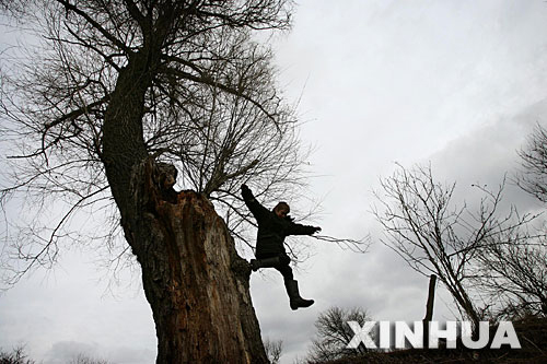 切尔诺贝利,苍穹之下,袅袅炊烟从荒凉的村落升起。继续生活下去,是这片土地上的人们在大灾难之后的选择和勇气。 这是2006年4月7日,在切尔诺贝利核电站隔离区附近的村庄佐林,一名乌克兰男孩从树上跳下。