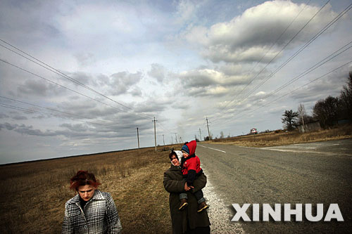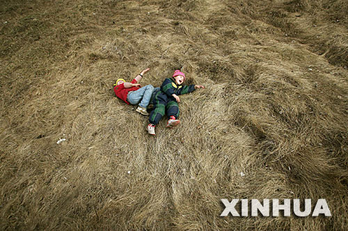 这是2006年4月7日,在切尔诺贝利核电站隔离区附近的村庄佐林,两名儿童在田野上玩耍。
