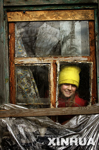 这是2006年4月7日,在切尔诺贝利核电站隔离区附近的村庄佐林,一名乌克兰女孩从屋内向窗外望去。