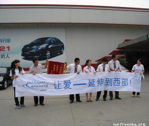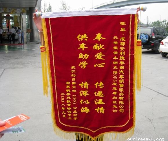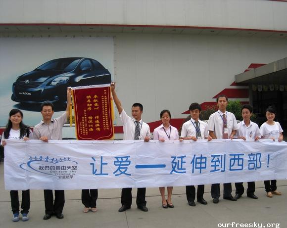 成都安利捷(ALJ)丰田汽车销售服务有限公司给OFS6月27日至7月初在四川灾区的走访无条件提供用车便利,并安排了两位优秀、任劳任怨的师傅。 Bf1,(^3XH
