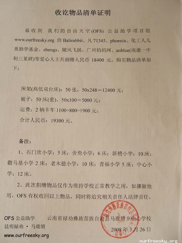 [公 示]禄劝马鹿塘乡新槽等学校2008年03月床、被子等捐赠活动情况汇报 [复制链接]