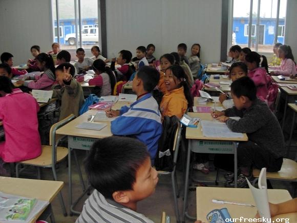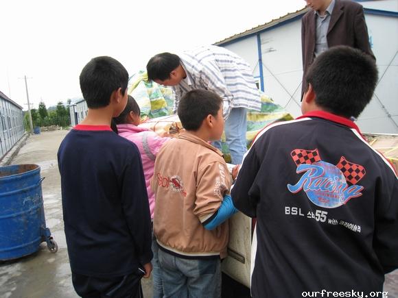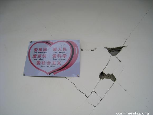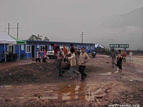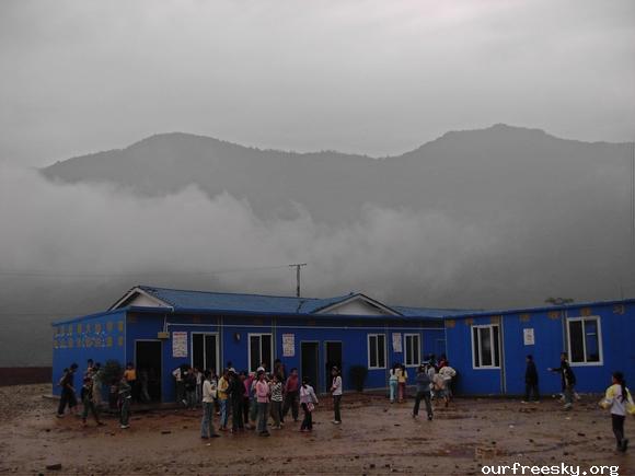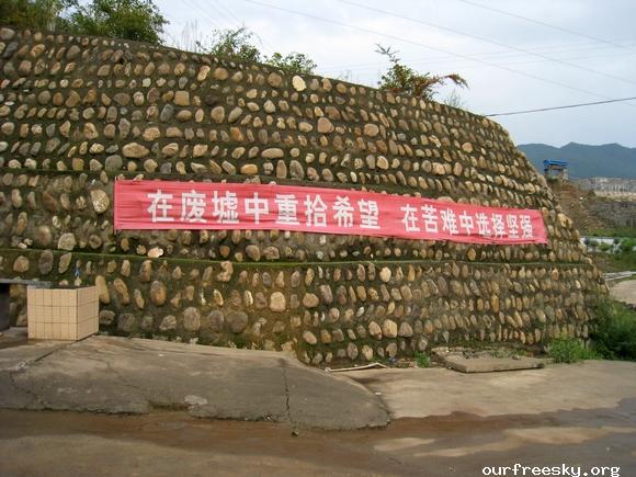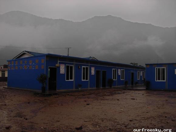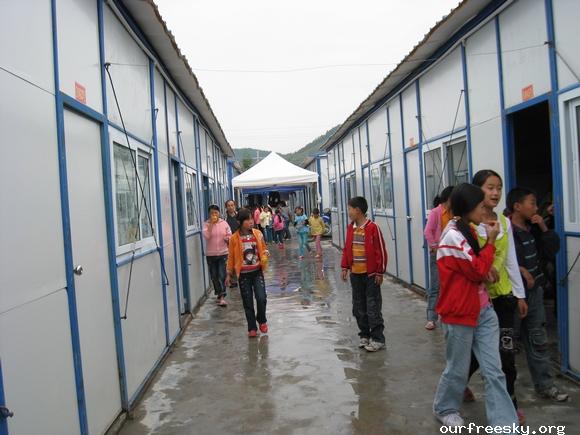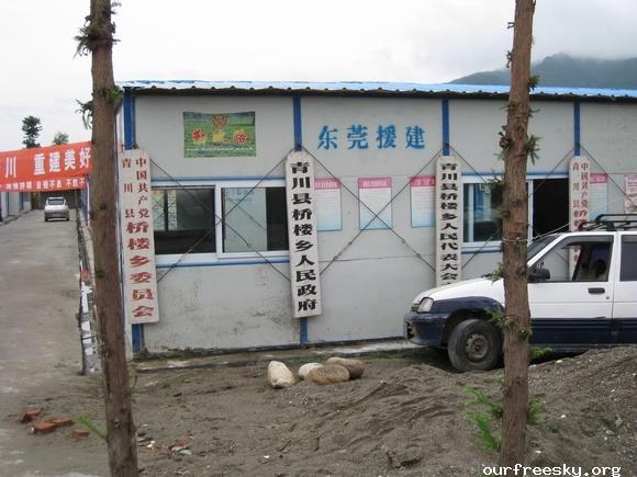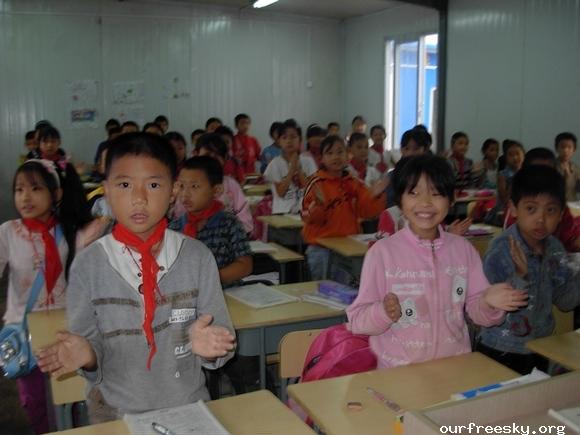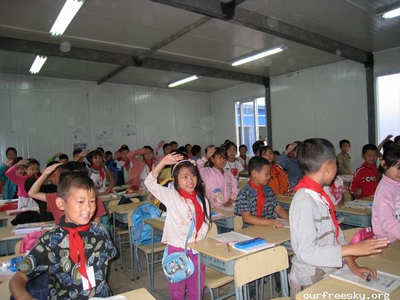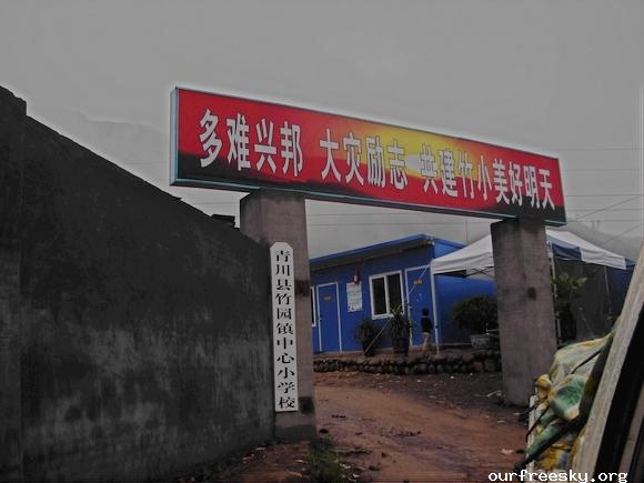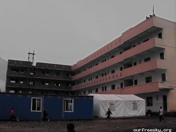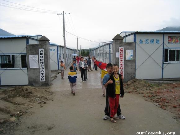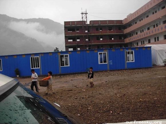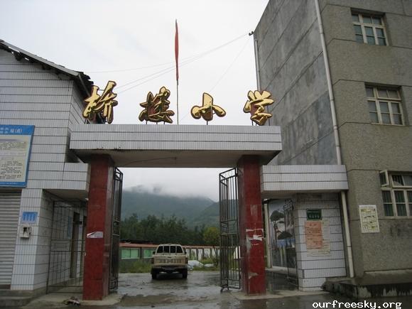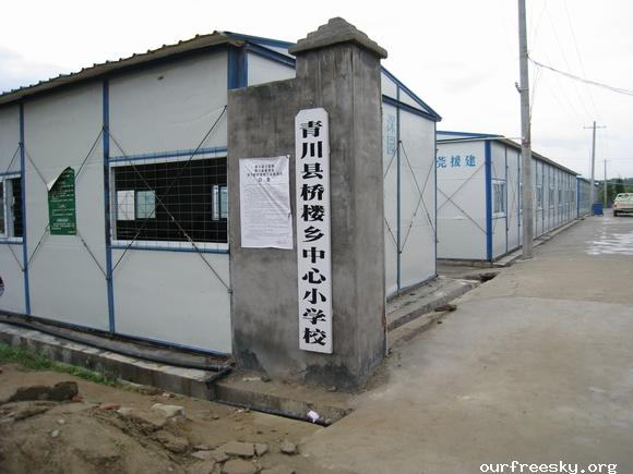 嗯嗯~ 书全部搬完了,毛绒娃娃也送了,还有特别重要的一箱医药用品,也送到学校旁边的医院了。(医院和学校全是板房,左边是医院,右边是学校,连一起的)我们和马老师,冀老师他们一起来到了校门外,听说要拍照,孩子们都兴高采烈的来到了校门外。祖国的花朵们,祝福你们快乐的茁壮成长....  然后马老师,冀老师师带我们一起去吃饭,因为不能马上吃饭,之前又听冀老师说桥楼小学的原校址就在前面,不远,于是在冀老师的带领下,我们上车去了原来的桥楼小学... ceI [ hM